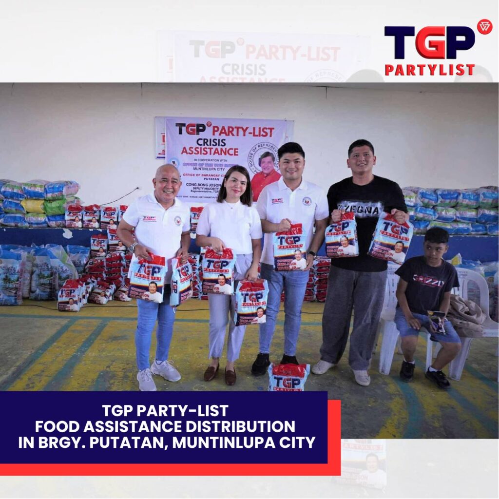 Through the initiative of TGP Partylist Representative and Deputy Majority Leader Congressman Bong Joson Teves Jr., food assistance was distributed to 1,000 residents of Barangay Putatan, Muntinlupa City. The activity was made possible in partnership with Barangay Officials led by Barangay Chairman Gerry Teves and City Vice Mayor Phanie Teves.