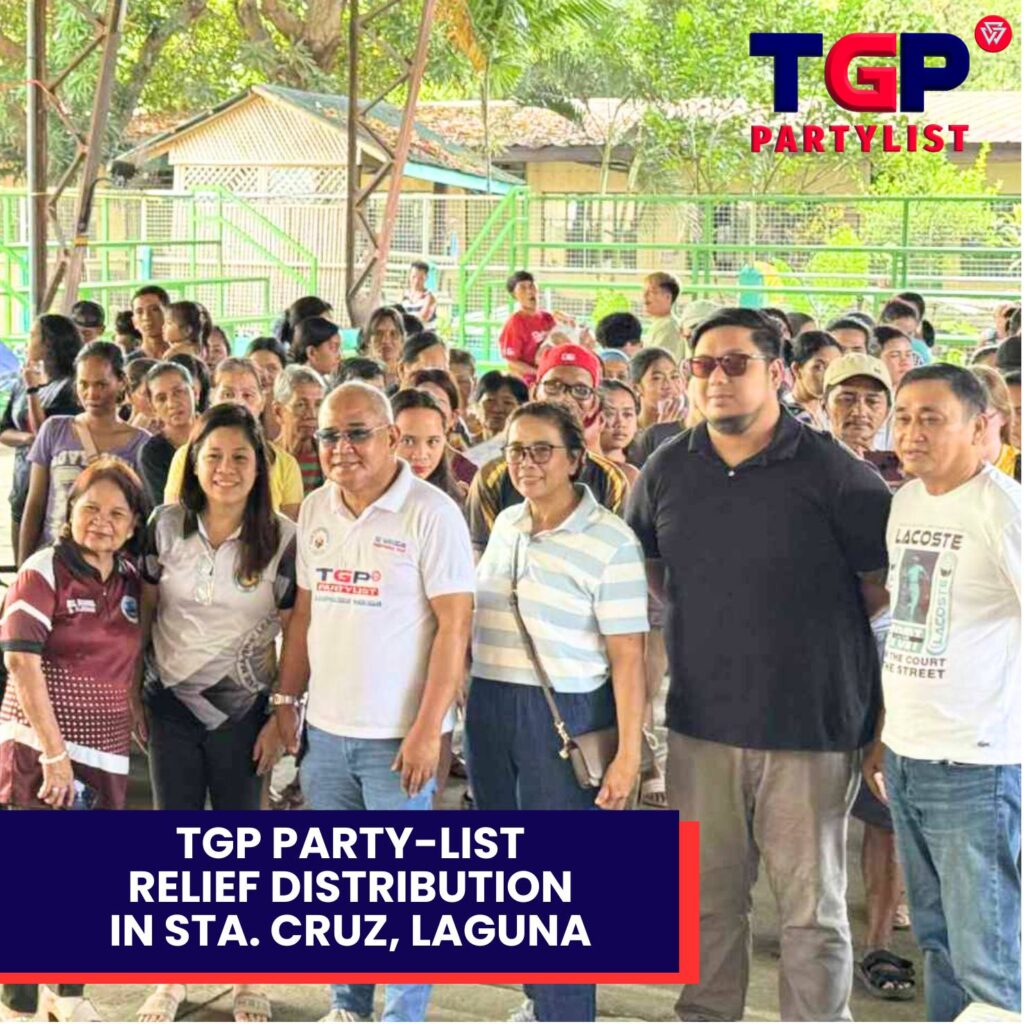 Through the initiative of TGP Partylist Representative and Deputy Majority Leader Congressman Bong Joson Teves Jr., conducted the distribution of relief goods in Sta. Cruz, Laguna, reaching out to families staying in various evacuation centers. The beneficiaries were residents affected by the flooding brought about by the recent habagat.