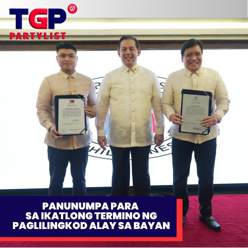 Pormal nang nanumpa sa kanyang ikatlong termino si TGP Partylist Representative at Deputy Majority Leader Congressman Bong Teves, Jr. para sa Ika-20 Kongreso sa isinagawang Mass Oath Taking na pinangunahan ni House Speaker Ferdinand Martin G. Romualdez sa House of Representatives. Kasabay rin niyang nanumpa ang kanyang anak na si Mayor Paolo Teves ng Baras, Catanduanes na kasalukuyang LMP President ng Catanduanes, kasama ang iba pang mambabatas, lokal na opisyales mula sa iba’t ibang bayan, syudad, at probinsya.